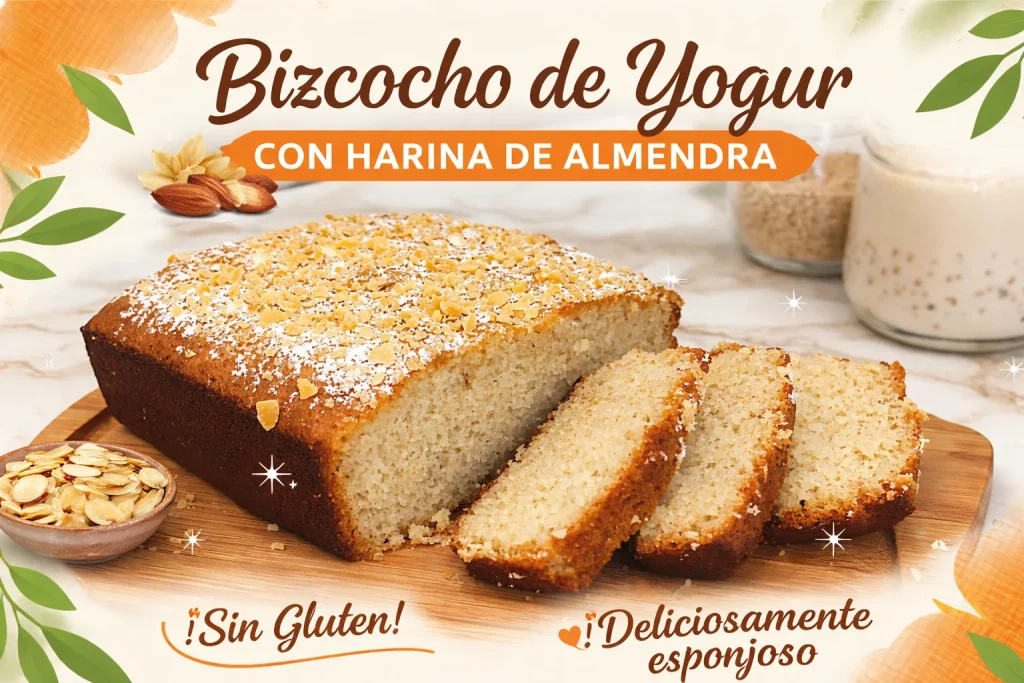 Este bizcocho es fácil y rápido. Tiene harina de almendra y yogur, queda tierno y con buen sabor. Si te gustan otras ideas con yogur, mira esta receta de bizcocho de chocolate esponjoso con yogur para comparar texturas.
