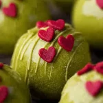 - Coloca los sobrantes de la cobertura en una bolsa de decoración y rocía sobre las trufas antes de colocar un sprinkles en forma de corazón encima para crear el icónico corazón del Grinch.