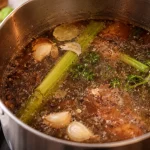 Para un sabor más profundo, asa los huesos y verduras. No laves la cebolla; la piel contribuye al color y sabor. Cocina a fuego lento para extraer colágeno y sabor.
