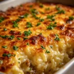 Deliciosa y reconfortante cazuela que combina carne molida, arroz y queso cheddar, perfecta para comidas familiares.