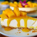 6. Servir: Corta el cheesecake de mango en porciones y sírvelo frío.