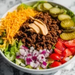 La Ensalada Big Mac es una forma deliciosa y divertida de disfrutar los sabores clásicos de una hamburguesa Big Mac en una versión más ligera y saludable. Es perfecta para un almuerzo rápido o una cena informal. Además, es fácil de hacer y puedes ajustarla a tu gusto. ¡Ideal para compartir con familia y amigos!