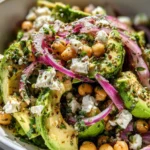 La ensalada de garbanzos, feta y aguacate es una opción refrescante y nutritiva. Este plato combina sabores deliciosos y texturas variadas. Además, es muy fácil de preparar y perfecta para una comida ligera o como acompañamiento. Los garbanzos aportan proteínas, el aguacate añade cremosidad, y el queso feta da un toque salado que realza el sabor.