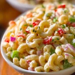 La ensalada es fresca, fácil y buena para la casa. Esta receta usa macarrones, pepinillos y una salsa cremosa. Si quieres ver otra versión clásica similar, revisa esta ensalada de macarrones clásica para ideas y comparación.