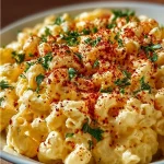 La Ensalada de Macarrones con Huevos Endiablados mezcla pasta y huevo en una salsa cremosa. Es ideal para preparar con anticipación y servir fría. Si buscas otra opción sin mucha mayonesa, prueba la ensalada de huevos con requesón sin mayonesa para variar el menú.