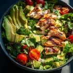 Una deliciosa y saludable ensalada de pollo con aguacate, perfecta para un almuerzo rápido o una cena ligera.