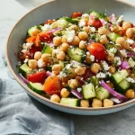 La Ensalada Griega de Garbanzos es una opción deliciosa y saludable. Es fácil de preparar y perfecta para los días calurosos o como un acompañamiento para tus comidas. Además, es rica en proteínas gracias a los garbanzos, lo que la convierte en una excelente elección para mantenerte lleno y satisfecho. Con frescos ingredientes como los pepinos, los tomates y las aceitunas, esta ensalada es un festín para los sentidos.
