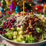 - Vierte la mezcla de yogur sobre la ensalada y mezcla bien.