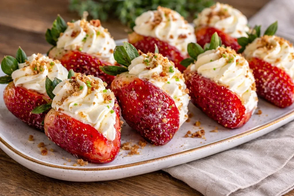 Las Fresas Rellenas de Cheesecake Cremoso son un postre rápido y fresco. Son fáciles de hacer y gustan a muchos. Si te gustan postres pequeños y cremosos, esta receta es perfecta. También puedes combinarla con otras ideas como bolas de macarrones con queso fritas para una mesa variada.