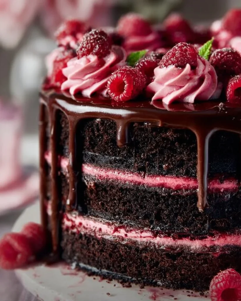Este pastel es ideal si buscas un postre con contraste entre chocolate y frambuesa. Si quieres ver una versión similar y más detalles, consulta la receta de Chocolate Raspberry Cake – Tastes Better From Scratch para inspiración.