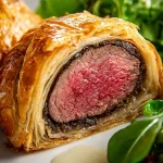 Si buscas una guía clásica paso a paso consulta esta receta clásica de Beef Wellington. Si prefieres una opción sin carne, mira esta alternativa de Wellington de champiñones vegano.