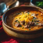 Una sopa fácil y deliciosa que combina carne, papas y queso en un solo plato, ideal para días fríos.