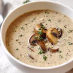 Cocina los champiñones hasta que queden dorados y añade sherry para dar sabor. Luego incorpora el caldo, deja hervir y cocina a fuego lento con crema y tomillo. Si buscas otra sopa cremosa con verduras, mira la sopa cremosa de verduras asadas para ideas similares.