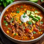 La Sopa de Enchilada de Carne Molida combina carne, frijoles y salsa en una sopa sabrosa. Puedes adaptar el picante y usar queso o crema para servir. Si te gustan otras recetas con carne molida, mira también albóndigas en salsa casera para más ideas.