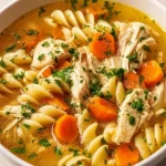 La Sopa de Pollo Casera Fácil es una receta clásica. Cocina caldo con verduras, añade pollo desmenuzado y fideos. El resultado es una sopa clara, sabrosa y ligera. Esta receta es buena para niños y adultos.