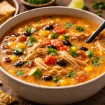 Esta receta es fácil y sabrosa. La Sopa de Tortilla de Pollo en Olla de Cocción Lenta cocina sola y da tiempo para otras cosas. Si te interesan más platos en olla lenta, mira este estofado de carne en olla lenta para ideas similares.