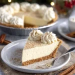 Esta tarta de eggnog sin horno es simple y rápida. No necesita hornear. Solo mezcla y enfría. Si buscas otras ideas para una comida completa, puedes ver esta receta de alitas de pavo al horno para acompañar.
