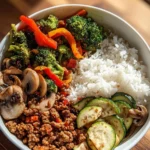 El «Spicy Ground Beef Stir-Fry Bowl with Garlic Vegetables and Steaming Rice» es una deliciosa opción para la cena. Es fácil y rápida de preparar, perfecta para aquellos días ocupados. Además, combina sabores y texturas que hacen que cada bocado sea especial. La carne de res molida es tierna y llena de sabor, mientras que las verduras complementan perfectamente el plato. Y no olvidemos el arroz, que es el acompañamiento ideal. ¡Todos disfrutarán de esta receta!