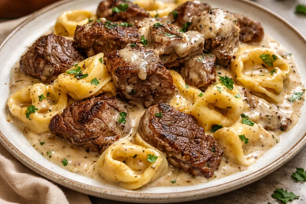 Tortellini de Carne Asada con Ajo en Salsa de Crema Bliss